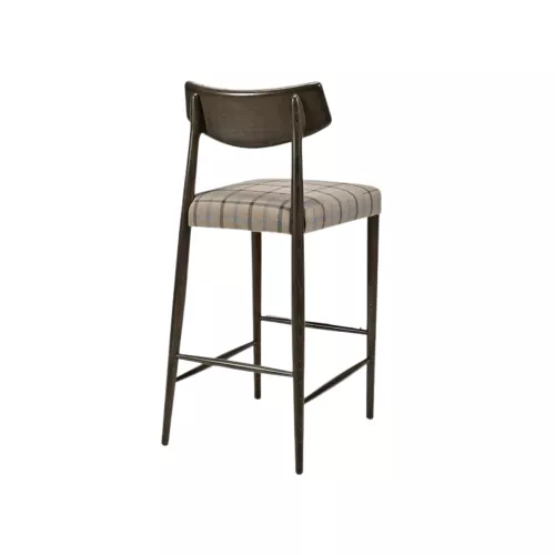 Barstool with a sturdy frame made of beech wood, designed to deliver both elegance and lasting comfort. The upholstered seat features Nosag springs for enhanced support and long-term resilience, while the upholstered backrest ensures an inviting seating experience. Crafted especially for Horeca interiors, it combines refined aesthetics with top-quality materials. Available in a wide range of fabrics and textures that maintain their beauty even under intensive use.