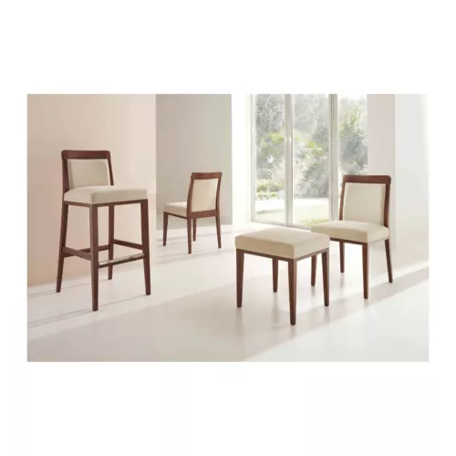 Dubai S este un scaun rezistent, cu cadru din lemn de fag acoperit cu lac poliuretanic pentru o durabilitate sporită la utilizarea intensă. Scaunul și spătarul sunt tapițate cu spumă de înaltă densitate, pentru confort și rezistență pe termen lung. Disponibil în diverse nuanțe de lemn și personalizabil cu o gamă largă de țesături profesionale sau piele ecologică.
