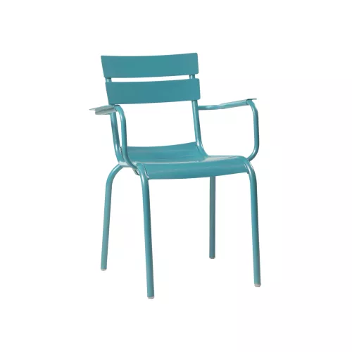 Scaunul de terasă Elvin A este o alegere elegantă și rezistentă, ideală pentru terasele restaurantelor și bistrourilor. Cu un cadru solid din aluminiu și finisaj colorat prin vopsire în câmp electrostatic, acest model are un aspect rafinat, completat de un finisaj lustruit sofisticat. Șezutul curbat în două puncte oferă confort sporit, iar cotierele integrate adaugă suport și relaxare suplimentară. Ușor, dar robust, Elvin A este stivuibil, fiind ușor de depozitat și manipulat. Disponibil în culorile moderne albastru, verde măsliniu și antracit, acest scaun îmbină perfect estetica cu funcționalitatea pentru spații profesionale.