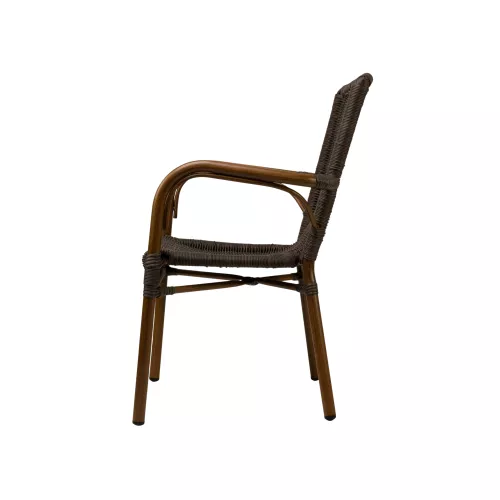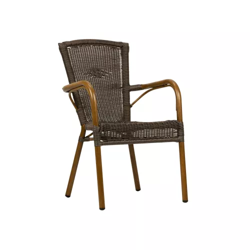 Scaunul Heerlen combină perfect durabilitatea și designul modern, fiind ideal pentru terasele restaurantelor, cafenelelor și bistrourilor. Cu un cadru din aluminiu de Ø32*1,5mm, oferă rezistență și stabilitate. Finisajul cu aspect de bambus adaugă un aer natural și elegant, perfect pentru spațiile exterioare. Împletitura rotundă PE rezistentă la UV garantează o calitate de lungă durată, rezistentă la decolorare, crăpături sau exfoliere sub razele soarelui puternic. Conceput pentru a fi stivuibil, scaunul Heerlen reprezintă o soluție excelentă pentru economisirea spațiului în locațiile aglomerate. Fie că doriți să îmbunătățiți zona de terasă sau să proiectați una nouă, scaunul Heerlen este o alegere stilată, funcțională și sustenabilă pentru orice terasă modernă.