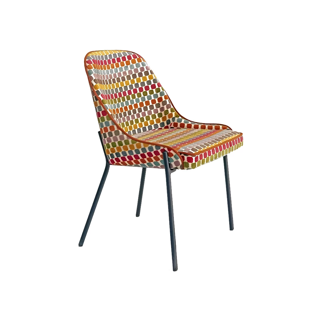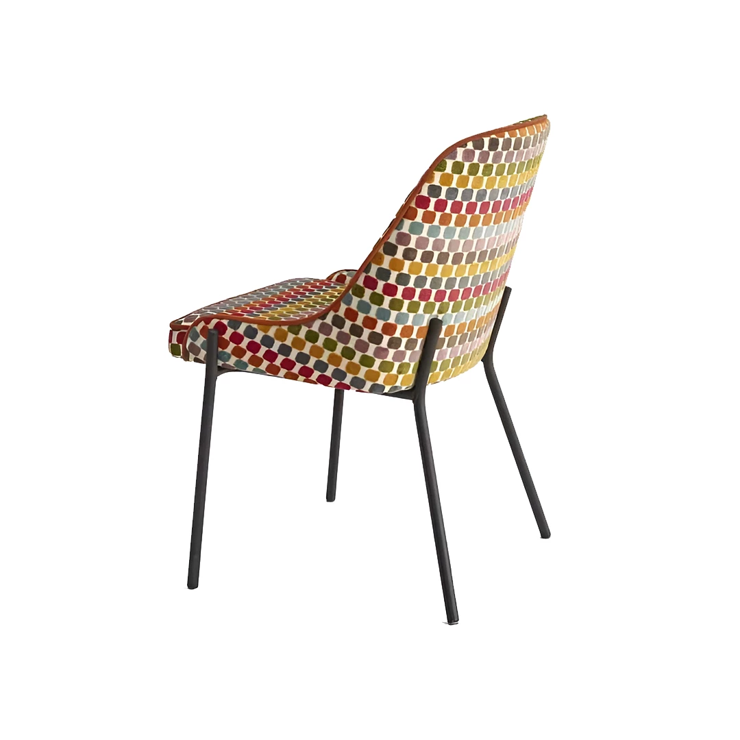 Romie S este un scaun confortabil cu cadru din oțel vopsit în câmp electrostatic, disponibil în orice culoare RAL. Este complet tapițat și poate fi personalizat cu o gamă variată de materiale profesionale sau piele ecologică. Ideal pentru locații horeca și stiluri diverse de amenajare interioară.