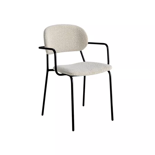 Scaunul Valesta A este conceput pentru locații horeca ce cer rezistență și confort. Are șezut și spătar tapițate, completate de brațe metalice care sporesc funcționalitatea. Tapițeria este disponibilă într-o gamă variată de materiale profesionale și imitație de piele. Structura fixă din metal vopsit electrostatic garantează stabilitate. Poate fi stivuit pentru o depozitare eficientă.