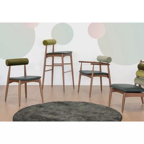 Yoto A este un scaun rafinat pentru restaurante, conceput pentru interior, cu un cadru solid din lemn de fag ce oferă rezistență și durabilitate. Scaunul este tapițat cu două tipuri diferite de materiale textile, atât pe șezut, cât și pe spătar, oferind o estetică modernă și posibilitatea de personalizare creativă. Ideal pentru restaurante, cafenele sau hoteluri care doresc să adauge o notă unică și elegantă ambientului lor.